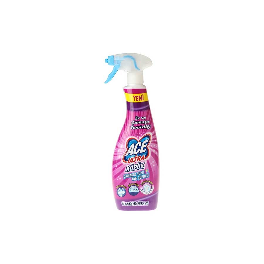 Ace Ultra Köpük Ferahlık Etkisi 700 mlACE Ultra Köpük, ACE çamaşır suyunun gücünü, yağ sökücünün etkinliği ile etrafa sıçratmayan süper kusursuz bir köpük içinde birleştirir. Özel formülü sayesinde: mutfak yüzeylerindeki yağı söker ve hijyen sağlar, banyodaki küçük yüzeylerde her gün hijyen sağlar ve beyaz çamaşırlardaki en inatçı lekeleri bile yok ederek, gömleklerin yakalarındaki kiri söker. Ferahlık Etkisi, Çiçek Kokulu gibi çeşitli parfümleri mevcuttur.