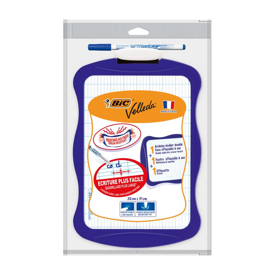 BIC Mini Beyaz Tahta + Beyaz Tahta Kalemi + SilgiÇift taraflı silinebilir beyaz tahta yanında Velleda 1721 beyaz tahta kalemi ve 1 adet tahtaya takılabilir silgiİki farklı kullanışlı yüzey ; biri düz, diğeri kareliDaha kolay yazım için yeni genişletilmiş çizgi aralıklarıOkulda kullanım için ideal, çocukların derse katılımını sağlar.Esnek olması sayesinde kırılmaya dayanıklıBirkaç gün üzerinde yazı kalsa bile kolay silinir.Boyut: 20x30cm