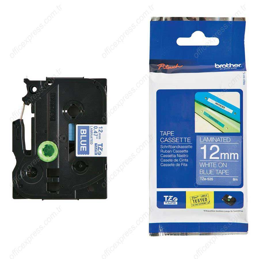 Brother TZe-535 Şerit EtiketMavi üzeri beyaz baskı12mm x 8 mGüneş ışığı ve kimyasal maddelere dayanıklıİç ve dış mekanlarda kullanılabilir