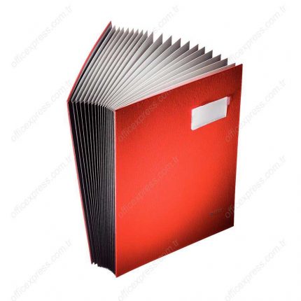Leitz Design İmza Dosyası 18 Bölmeli Kırmızı Renk, Tasarım lamine kapak.