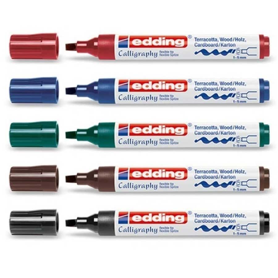 Şık kaligrafi tarzı el yazısı sadece kağıt ve kartlar için değildir. Bu kaligrafi markörü ve onun esnek ucu ile, gözenekli ve emici yüzeyler üzerinde de güzel kaligrafiler tasarlamak mümkündür. Basit bir parça ahşabı bir kişisel hoş geldiniz levhasına dönüştürebilir, bir toprak saksıyı içindeki bitkinin adıyla süsleyebilir veya yaratıcılığınızı bir tuval veya duvar üzerinde serbest bırakabilirsiniz. Ayrıca, esnek ucu ve bunun sonucunda ortaya çıkan yumuşak yazma hissi çok keyiflidir.Markör 1 ila 5 mm çizgi kalınlığına sahiptir. Pigmentli mürekebi neredeyse tüm yüzeylerde suya ve ışığa dayanıklıdır. Mürekkep, uç kısımdan geniş bir renk şeridine akar ancak buna rağmen kağıt yüzeyine dökülmez. Birbirleriyle uyumlu şekilde koordine edilebilen çeşitli renkleri mevcuttur.