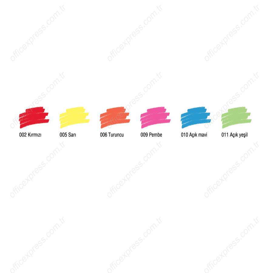 Fosforlu kalem edding 344Mektup, protokol, gazete, kitaplardaki metin bölümlerinin işaretlenmesi ve vurgulanması için geliştirilmiş fosforlu kalemlerdir.Renk parlaklığına sahip su bazlı mürekkepli kalem 6 ayrı renk çeşidine sahiptir.Uygulama yapıldıktan sonra hızlı kuruyan, silinmeye karşı dayanıklı fosforlu mürekkep içeren kalem tekrar doldurulabilir.~2 mm-5 mm çizgi kalınlığına sahip kesik uçRenkler; 002 (Kırmızı), 005 (Sarı), 006 (Turuncu), 009 (Pembe), 010 (Açık mavi), 011 (Açık yeşil)