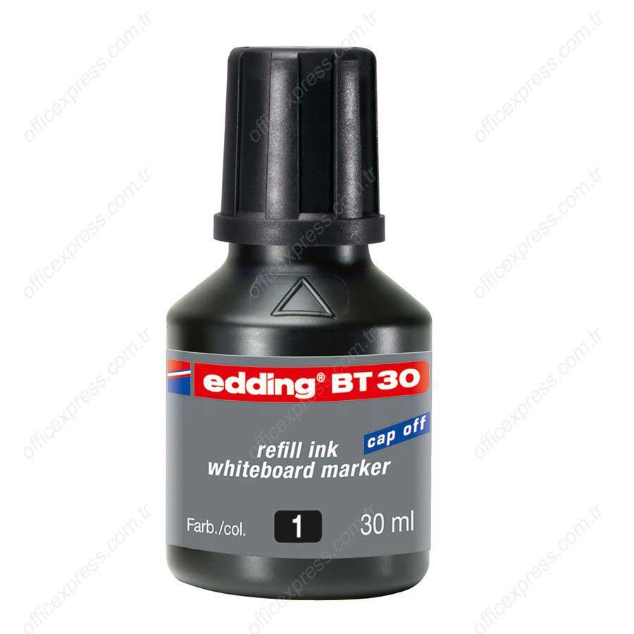 Edding Beyaz Tahta Kalemi Mürekkebi- 30 ml mürekkep içeren damlalıklı şişe- Hafif kokulu mürekkep- Edding 360,361,363,365 ve Compford 2 ve diğer doldurulabilir tüm beyaz tahta kalemlerini doldurabilirsiniz.- Renkler: Siyah, Mavi, Kırmızı, Yeşil