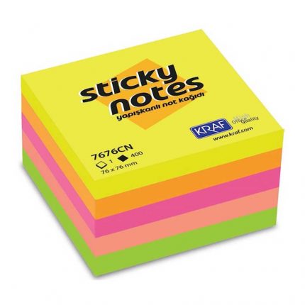 Kraf Yapışkanlı Not Kağıdı Küp 76X76 Neon 7676CN