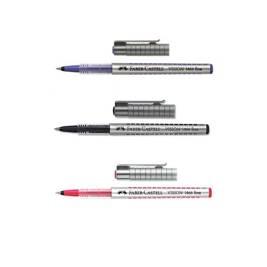 Faber Castell Vision 1466 FineYumuşak ve rahat yazım için 0.4 mm kalınMürekkep seviyesini gösteren pencereİç kısmında geniş sıvı mürekkep haznesiKarbon kopya için uygundurSıvı mürekkep sistemi sayesinde sabit mürekkep akıcılığı3 canlı renkte: Kırmızı, mavi ,siyah