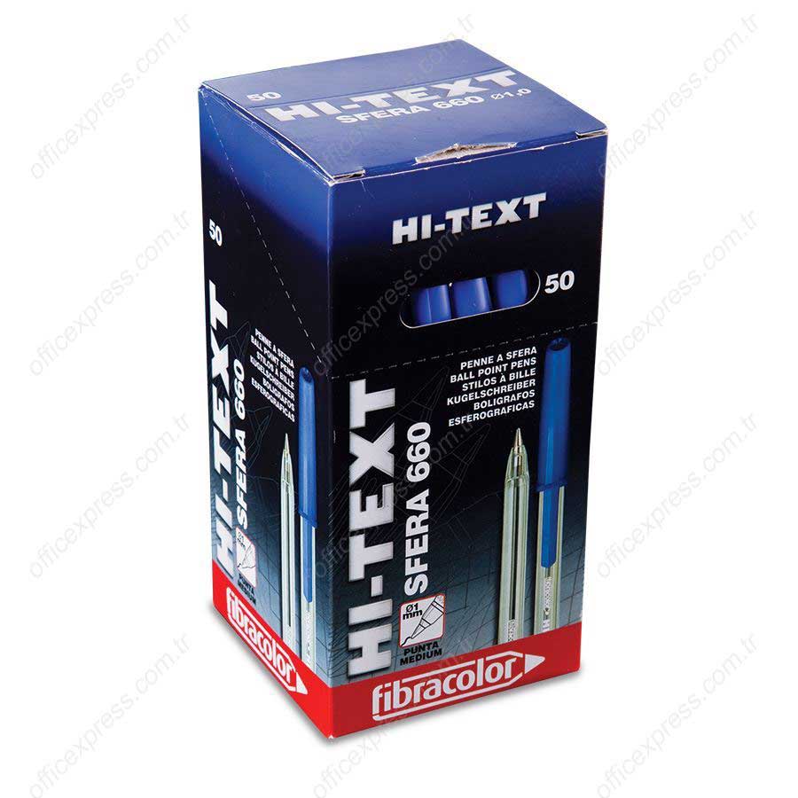 Hi-Text Tükenmez Kalem Mavi 50 Li Kutu, 1mm Çelik-Konik Uç