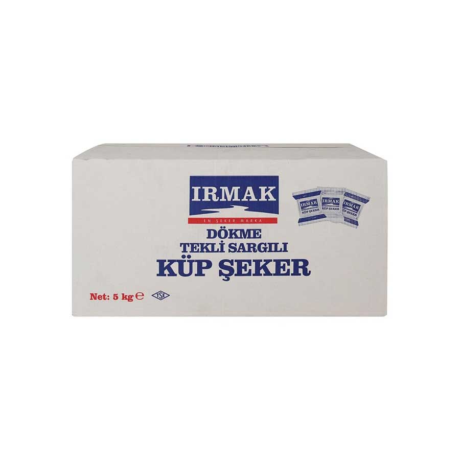 Irmak Tek Sargılı Küp Şeker 5 kgKüp formunda %100 doğal şeker pancarından üretilen Irmak Küp Şeker, çayın içinde kolay eriyen kaliteli yapısıyla 5 kg’lık paketlerde tek sargılı olarak 1800 adet halinde sunulmaktadır.