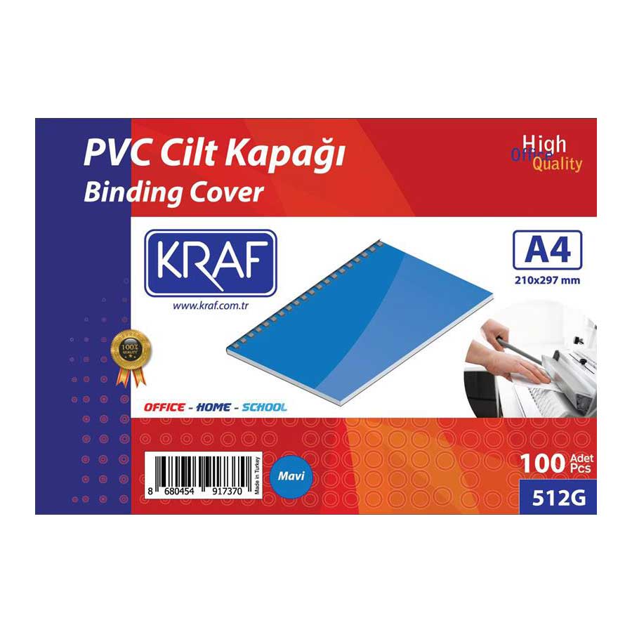 Kraf Cilt Kapağı A4 160 Mikron 100’lü Paket MaviA4 ebatlarinda160 mikron kalinliginda100lü paketMateryal PVC