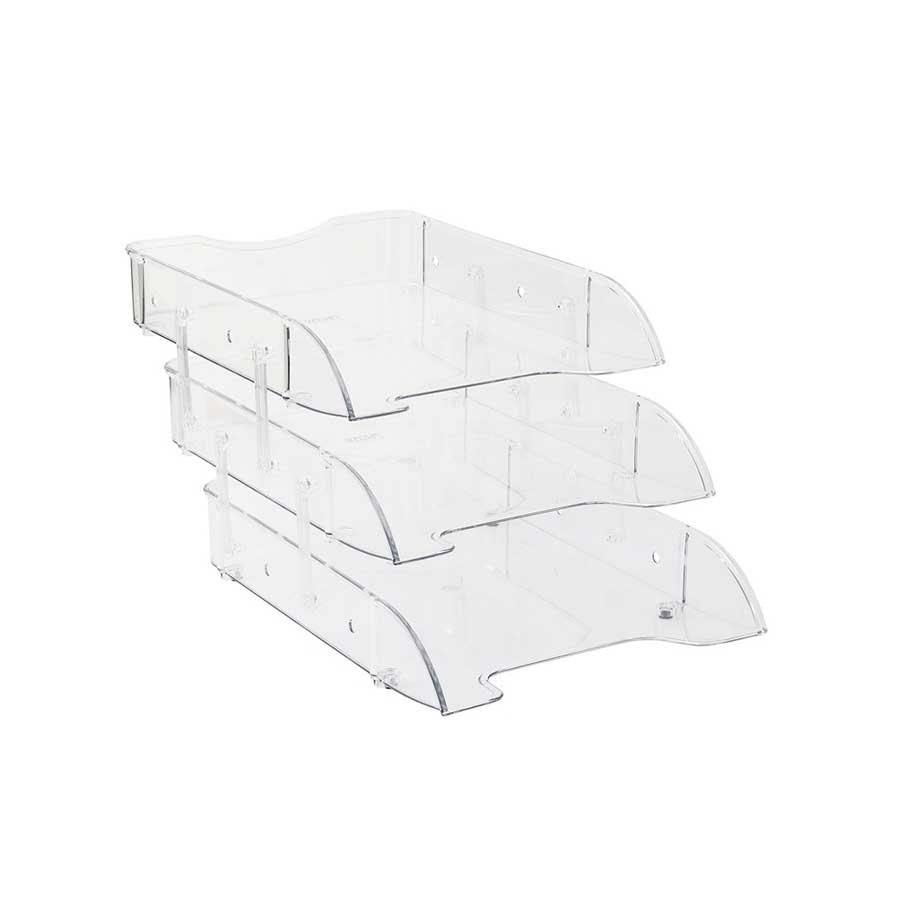 Kraf Evrak Rafı 3’lü Raylı Şeffaf 829GModern tasarım Hareketli raflar Darbe ve kırılmaya karşı dayanıklı Polystrene malzeme Kaymayı önleyici pvc ayak