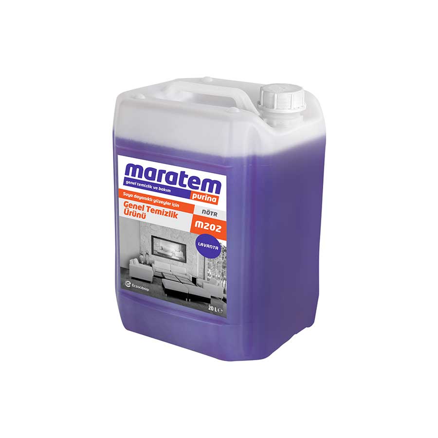 Maratem M202 Genel Temizlik Ürünü Lavanta 20 LitreSuya dayanıklı tüm yüzeylerin günlük temizliğinde kullanılır.Yüzeyleri çizmeden temizler.Fosfat içermez.
