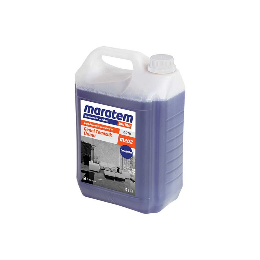 Maratem M202 Genel Temizlik Ürünü Lavanta 5 LitreSuya dayanıklı tüm yüzeylerin günlük temizliğinde kullanılır.Yüzeyleri çizmeden temizler.Fosfat içermez.
