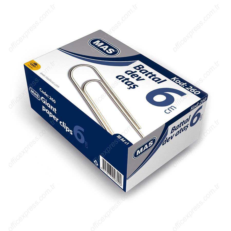 Mas 260 Dev Ataş No 6 Battal Tip• 30 ‘Lu kutu• No: 6• 6 cm boy• Nikel Kaplamalı