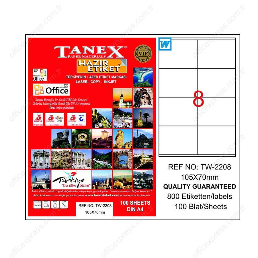 Tanex TW-2208, Beyaz Etiket, Laser Etiket 105x70mm